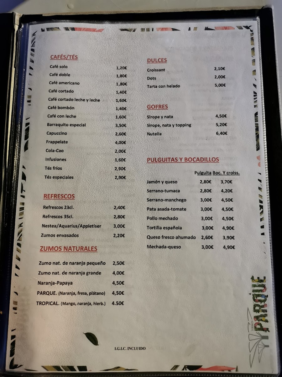 “ Terraza Parque is a pleasant and inviting spot, offering a relaxed atmosphere with friendly and attentive service. Nestled in a prime location, right next to the iconic Reloj de Flores, it’s an ideal place to sit back, enjoy the surroundings, and take in the charm of Parque García Sanabria. However, one thing that stood out to me—and not in a good way—was the complete absence of Canarian beers on the menu. Given its location in the heart of Santa Cruz de Tenerife, this omission feels out of place. With a rich brewing tradition in the Canary Islands, featuring brands like Dorada or Tropical, it’s surprising that a local establishment wouldn’t showcase any regional options. That aside, the experience was enjoyable. The setting is perfect for a casual drink or a coffee, and the service was efficient and welcoming. With just a small adjustment—embracing local flavors in its beer selection—this terrace could feel even more authentic and connected to its surroundings. ”